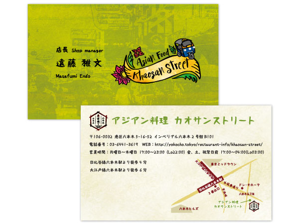 Works カオサンストリート ショップカード制作 関連する制作 カオサンストリート ロゴ制作 カオサンストリート 料理写真撮影ディレクション Category ALL Web Design Print Logo Others